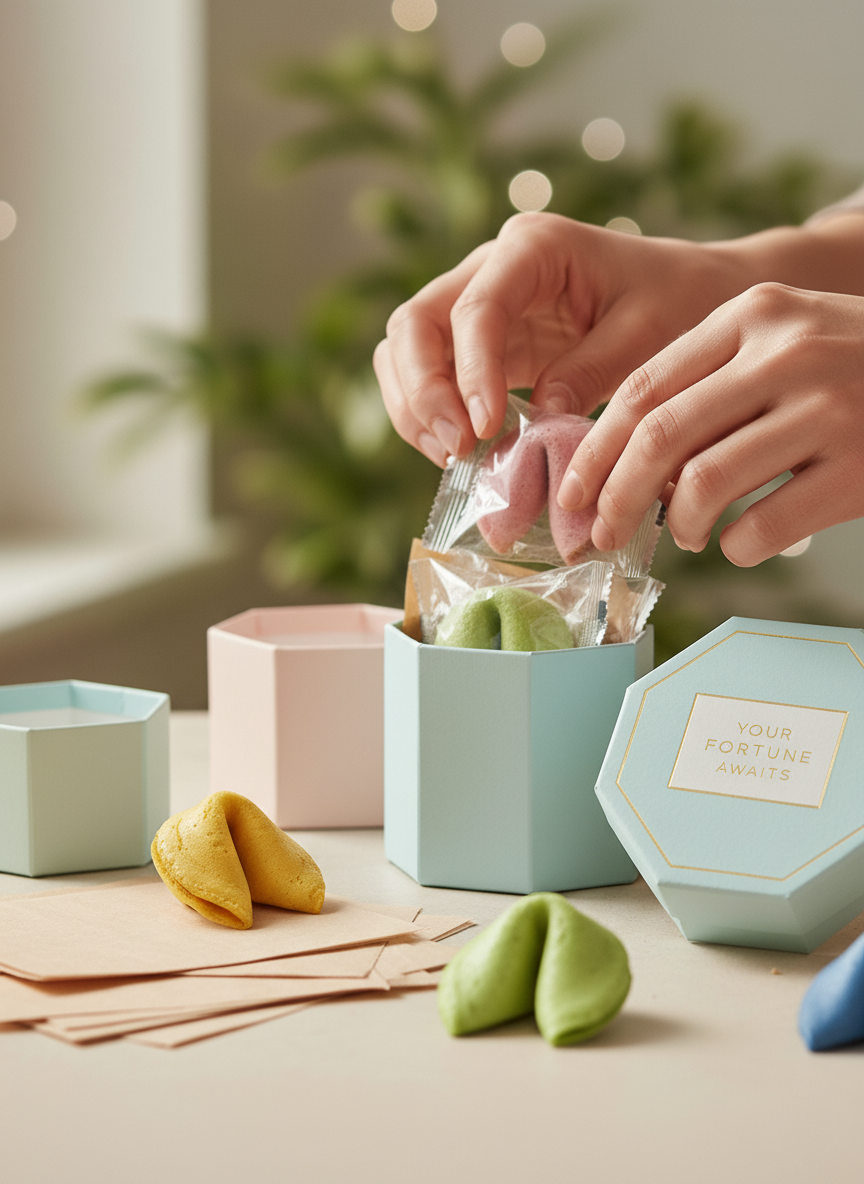Tworzymy personalizowane ciasteczka z wróżbą, które zaskakują, cieszą i zostają w pamięci. Idealne na prezent, wydarzenia, kampanie firmowe lub po prostu na codzienny uśmiech. Każde ciasteczko pakujemy z dbałością o każdy detal — bo liczy się nie tylko smak, ale też emocje, jakie ze sobą niesie.