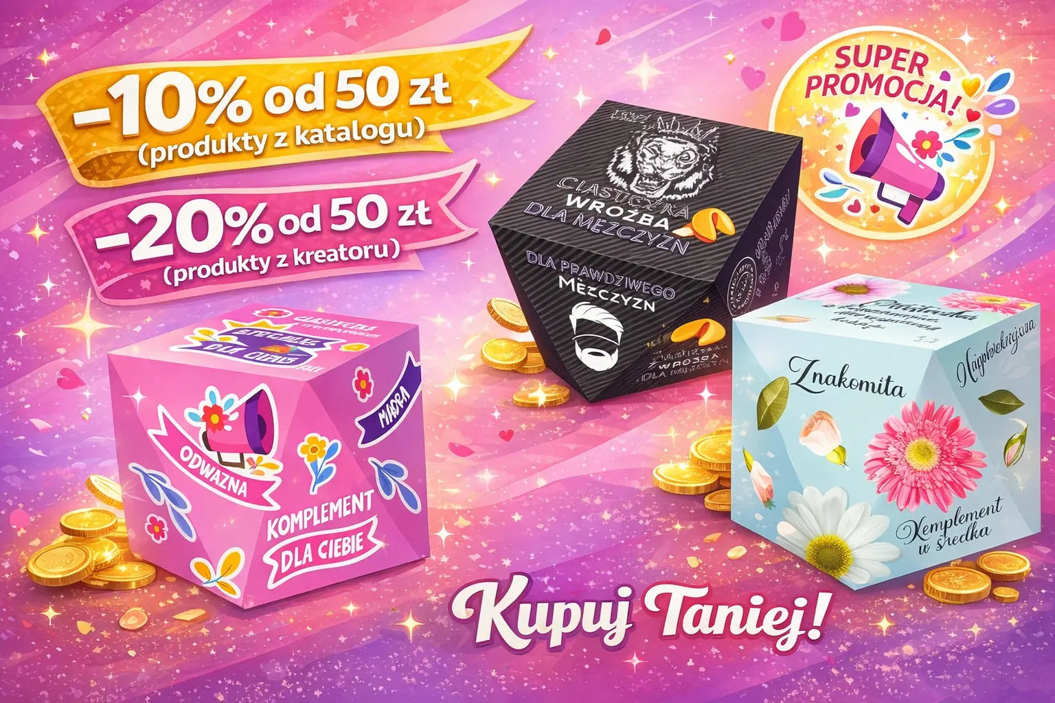 Napisz własne wróżby, życzenia lub cytaty — każde ciasteczko może mieć inny tekst! Twoje słowa, Twoja historia. Stwórz personalizowane ciasteczka z wróżbami na każdą okazję.